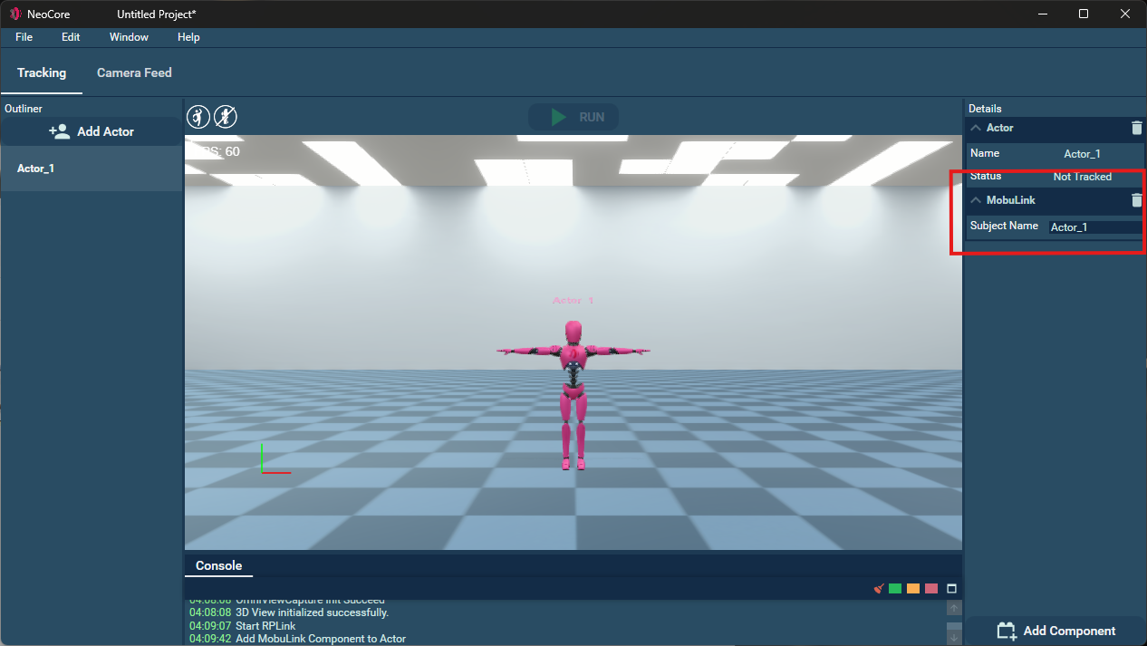 - Select an actor and click Add Component > MobuLink