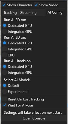 - "Wait For A Pose" - if this option is disabled tracking will start as soon as a full body is detected, the tracking quality may not be as good as when calibrated with A-Pose.