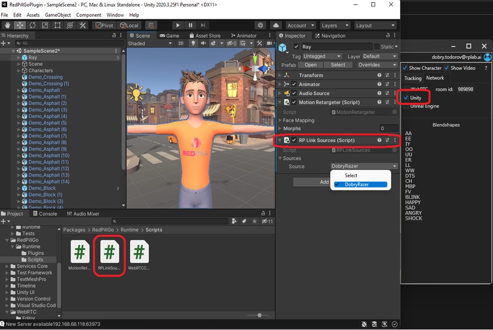 Using RPLink to connect RedPillGoHub and Unity through Socket in local network: