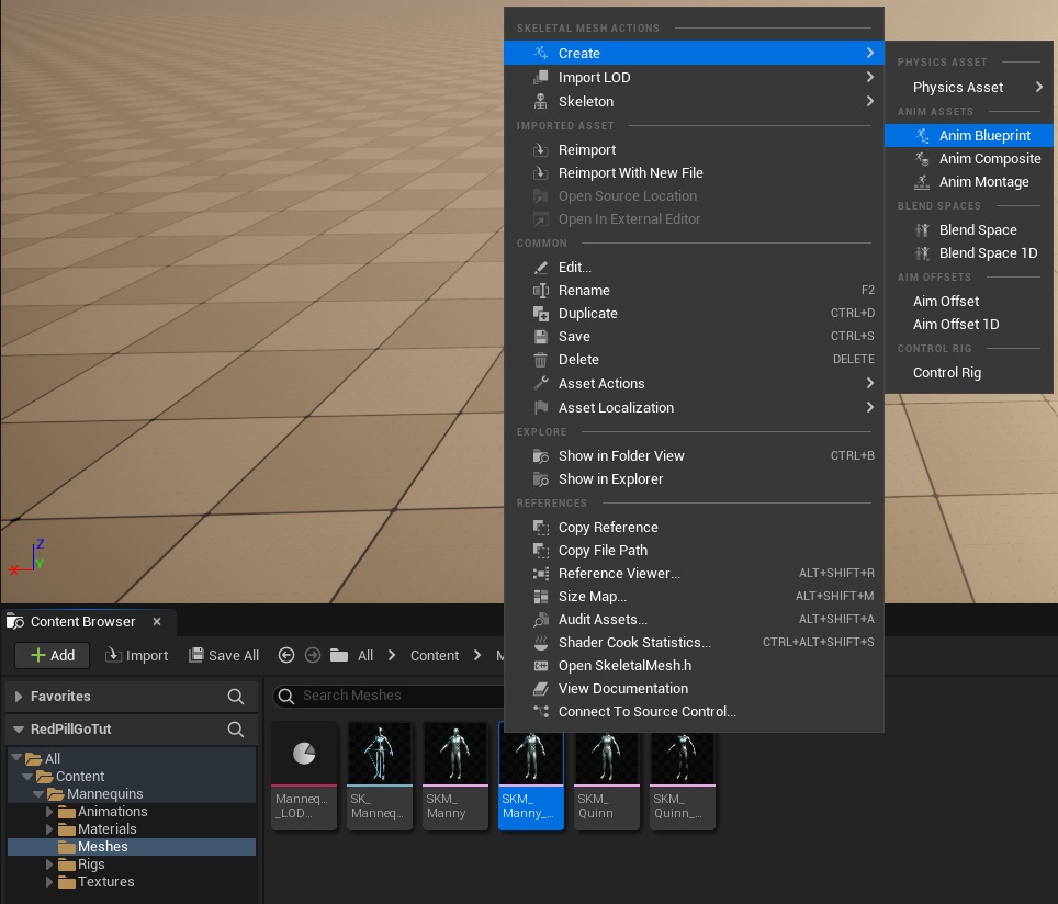 - Right click on the Skeletal Mesh and create new Animation Blueprint from it and open it