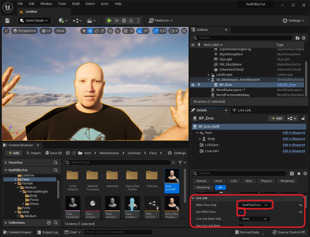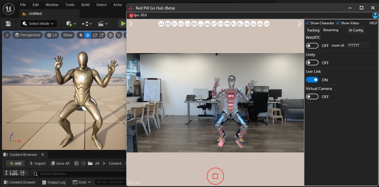Red Pill Go Hub streams the motion data in UE Mannequin format for UE versions 5.x and facial animation in ARKit format so there is no need to install additional third party plugins.